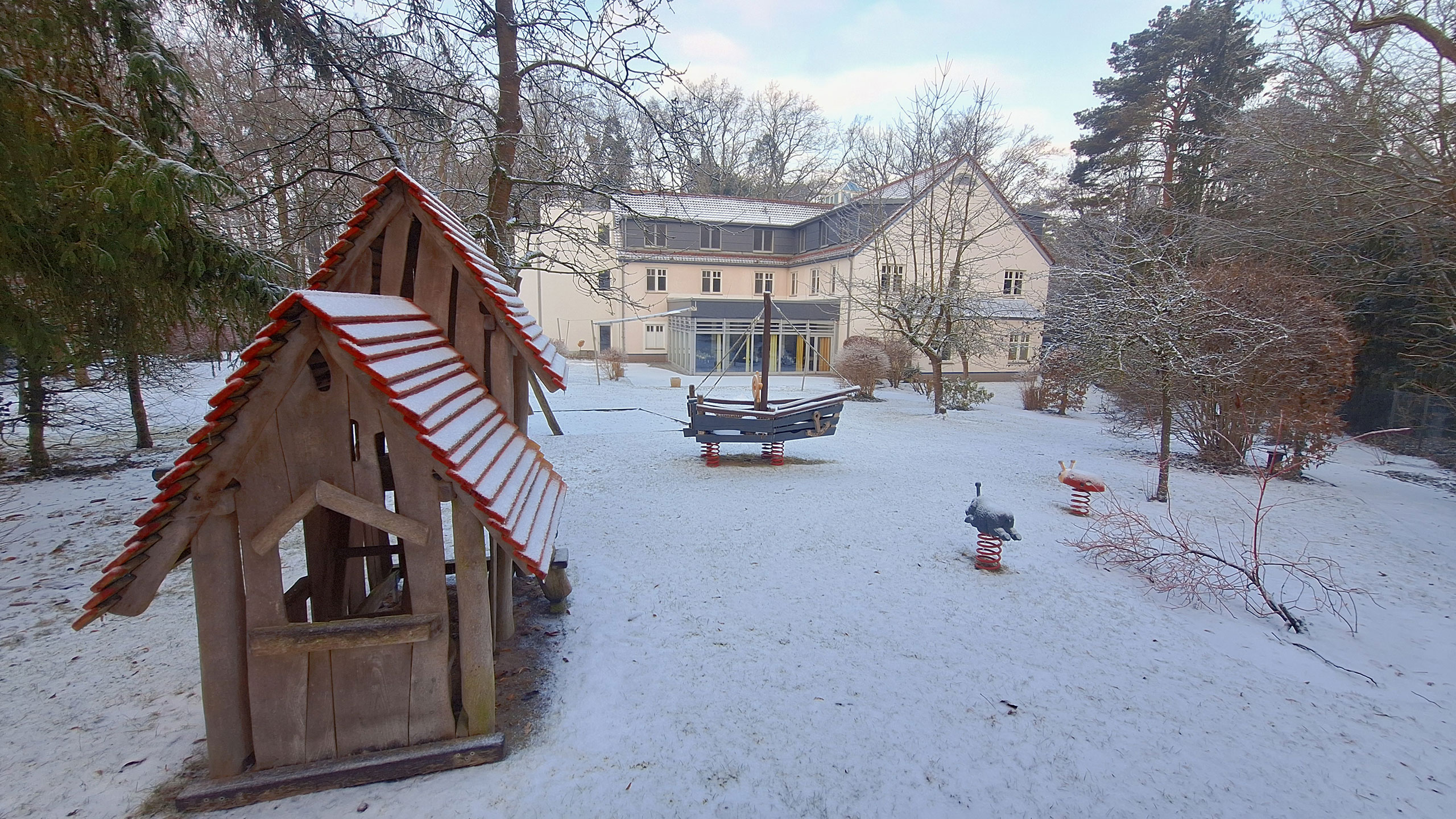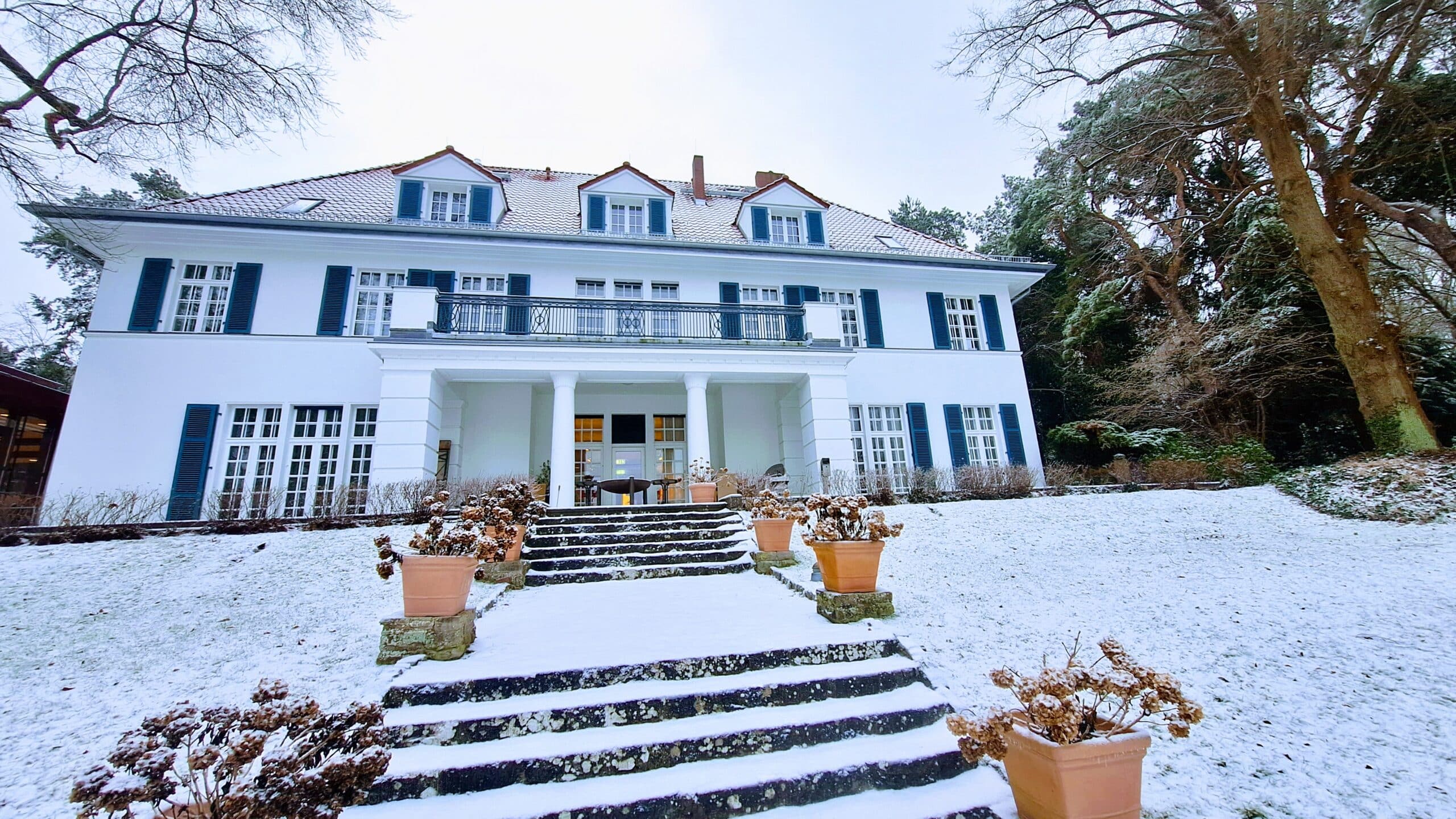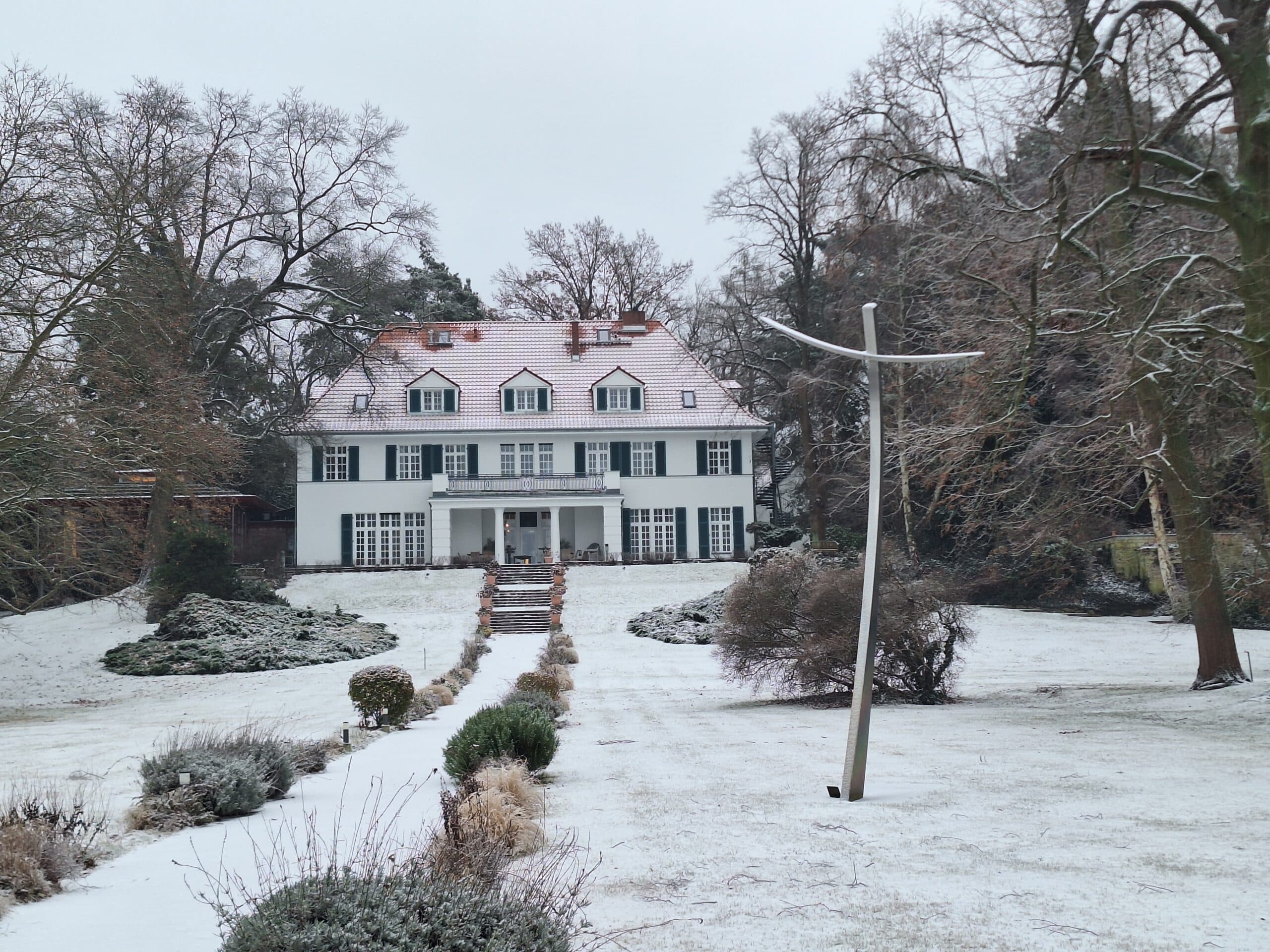 Januar 2026 // Ausblicke, Perspektiven, Raum für gute Diskussionen und kreative Arbeitsgespräche: Den perfekten Ort hierfür bietet die Evangelische Bildungsstätte auf Schwanenwerder ihren Tagungsgästen auch jetzt im Winter. Und nicht nur das. In der Ruhe der Natur lässt sich zwischendurch abschalten und neue Kraft und Inspiration sammeln. Rückzugsorte in unserem denkmalgeschützten Garten gibt es reichlich. Klicken Sie mal durch unsere aktuelle Galerie: Die Aufnahmen entstanden zu Wochenbeginn in der Umgebung unserer Villa, dem Plenarsaal und dem Gästehaus. Sie vermitteln einen Eindruck von der idyllischen Winterlandschaft, die unsere Gäste aktuell während ihres Aufenthaltes am Berliner Stadtrand erwartet.